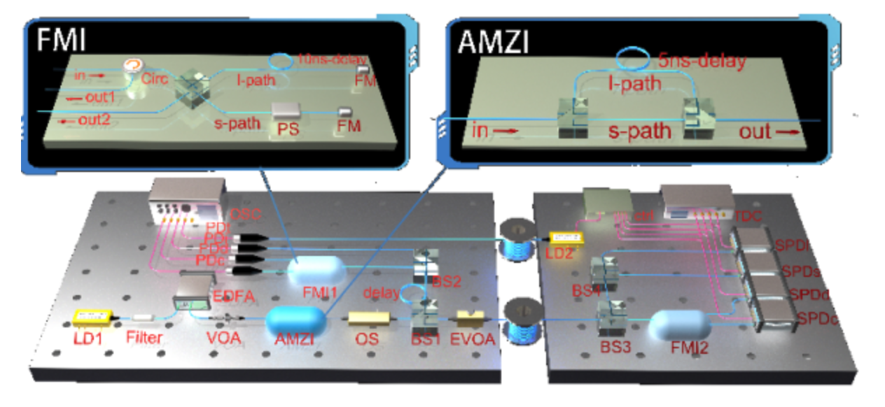 為徹底解決主動調制帶來的隱患,郭光燦團隊與合作者另辟蹊徑,設計了無需主動調制的量子密鑰分發系統。該系統方案克服了此前無法同時實現“被動”光強調制和量子態編碼的矛盾,并給出了考慮“有限長效應”的嚴格安全密鑰率。該團隊通過全被動時間戳-相位編碼解決信道環境干擾的難題,同時通過優化后選擇策略解決數據吞吐量過大的難題,最終完成了無需任何主動調制的量子密鑰分發系統,驗證了全被動量子密鑰分發的安全性與可行性。